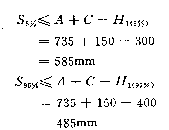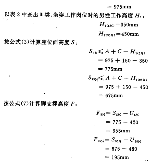 計算出的A值是最小值,在以后的計算中,應該按實際確定的A值進行(例如,A=800mm)。按公式(3)計算座位面高度S