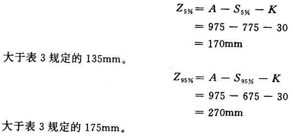 5.3.2.6 根據5.2.3.2條檢驗第5和第95百分位數的大腿空間高度Z5%和Z95%是否大于表3中的最小限值。