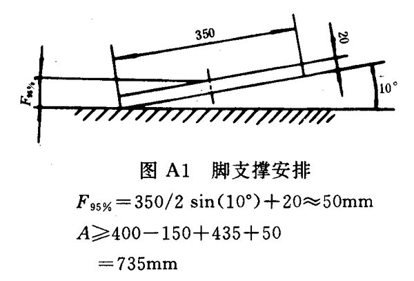 5.3.2.4 在用公式(4)計算工作面高度A時,必須使用小腿空間高度U和腳支撐高度F的第95百分位數,保證第95百分位數的作業人員有必要的腿部空間高度G。