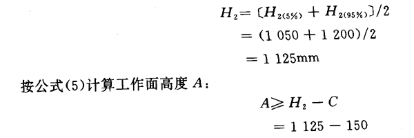 5.3.3.4 用公式(5)確定工作平面高度A。同時必須注意: