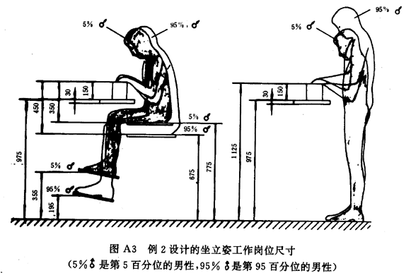 其中H2(5%)和H2(95%)分別為表2中某一類別作業的女性或男性第5和第95百分位數立姿工作崗位高度。