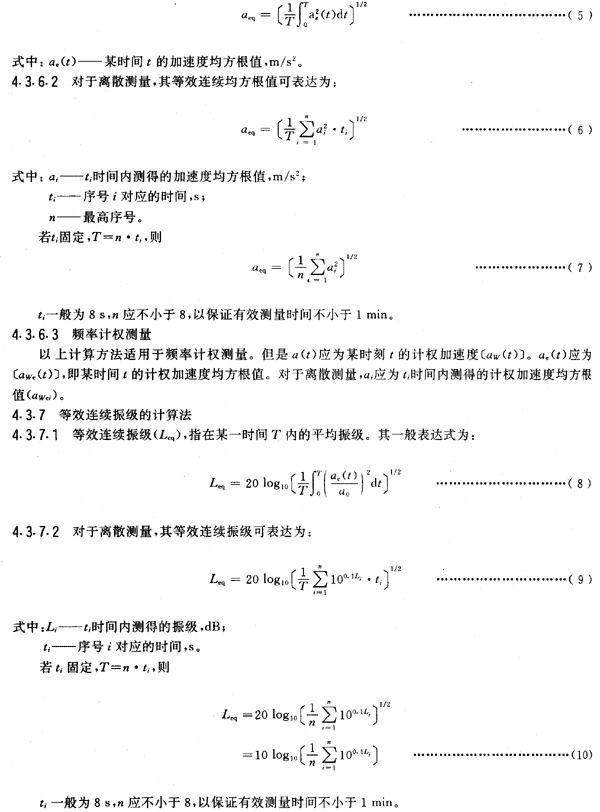 i (不同序號的振級),分別按照第4.3.6條和4.3.7條計算等效連續均方根值和等效連續振級。若儀器具有測定等效連續均方根值(a