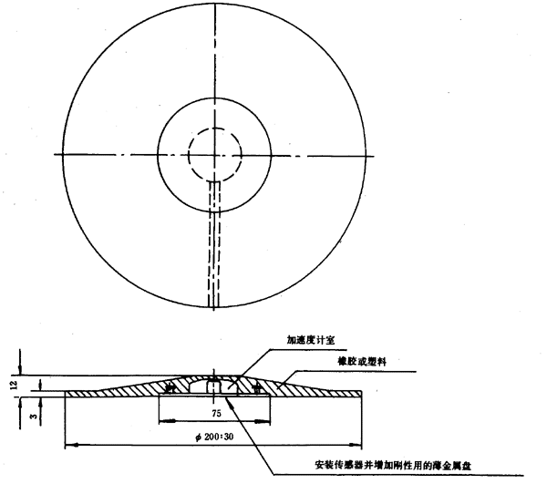 6.2 根據被測部位的實際情況,選擇適當的傳感器(靈敏度、量程范圍)。傳感器的安裝固定應符合本標準第4.1條和第5章的有關規定。傳感器靈敏軸與坐標方向軸之間的偏差應不大于10°。可采用附錄A(參考件)所示的用以固定傳感器的墊盤。