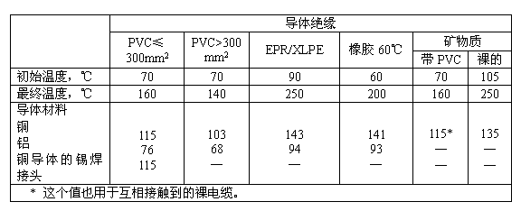 對于持續時間不超過5s的短路,由已知的短路電流使導體從正常運行時的最高允許溫度上升到極限溫度的時間t可近似地用下式計算:
