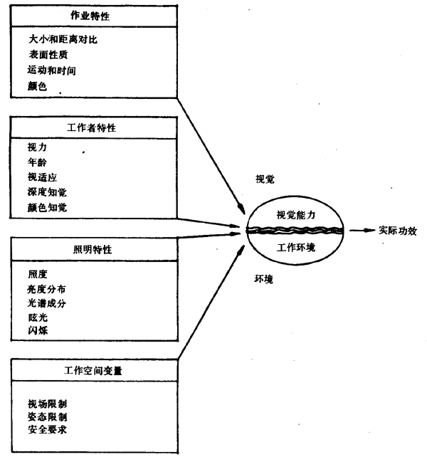下圖規定了在視覺環境中影響工作者視覺功效的主要參數。