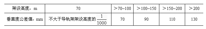 3.8.2 交接檢驗時,應對安裝完的導軌架軸心線全高用經緯儀檢查,導軌架軸心線對底座水平基準面的垂直度公差值應符合表1的規定。