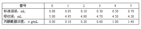 表A1 丙酮氰醇標準管的配制