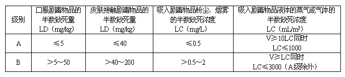 5.1 以急性毒性指標為主,適當考慮劇毒物品的的理化性質和其它危險性質,進行綜合分析、全面權衡,將劇毒物品分為A、B兩級。