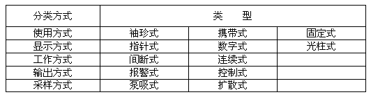 表1 儀器分類表