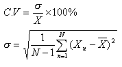 對同一種標準氣短時間內測量結果的重現性,用變異系數C.V表示,計算公式如下: