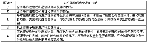 5.5.7 屬于配裝組S的貨物可以同除配裝組A和L以外的其他配裝組的貨物配裝。