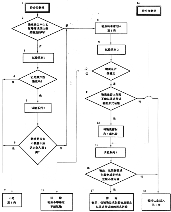 A.1 按圖A.1所示的程序對待分類物質或物品進行分析、試驗和判斷,確定它是否屬于第1類民用爆炸品危險貨物。