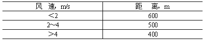 3.1 硫化堿廠的衛生防護距離,按其所在區近五年平均風速規定如表1所示。