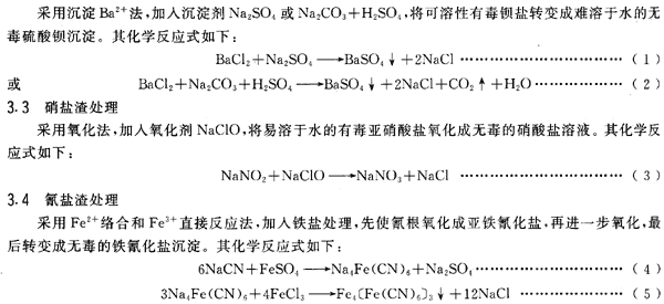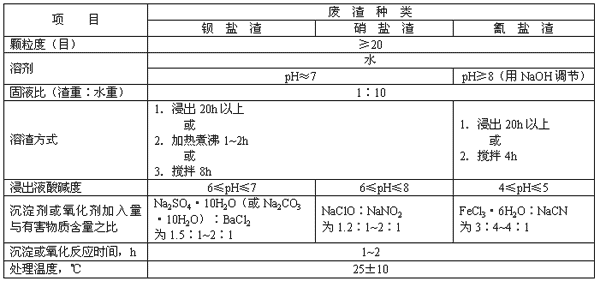 分別采用化學沉淀法和氧化法對熱處理鹽浴三類廢渣進行無害化處理。
