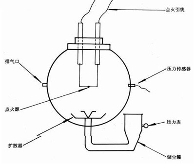 每當(dāng)使用新的點火源時,要進(jìn)行點火源性能的檢測。檢測時要在沒有添加粉塵,但同樣要把爆炸罐抽真空和儲塵罐加壓的情況下,對點火源本身產(chǎn)生的壓力進(jìn)行測定。點火源本身產(chǎn)生的壓力應(yīng)為0.11±0.01MPa表壓。