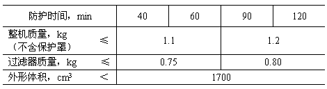 產品在表1規定的防護時間內,按GB8160-87《礦用一氧化碳過濾式自救器試驗方法》試驗時,吸入空氣的一氧化碳透過濃度不應超過500ppm,一氧化碳透過積累量不應超過380mL。