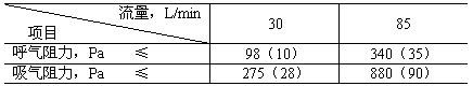 產品呼吸阻力試驗在防一氧化碳性能試驗后立即進行,并應符合表2的規定。