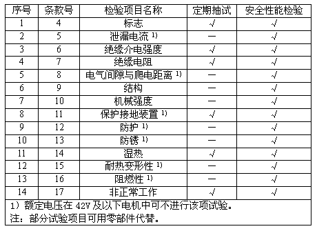 電機進行安全性能檢驗時采取隨機抽樣方式進行,樣品數量為1臺。