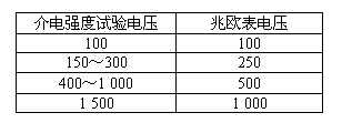 d) 絕緣電阻檢查用兆歐表的電壓值應符合表2規定。