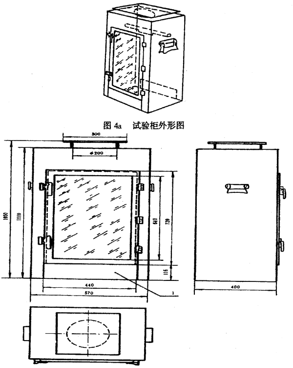 g. 一個防風(fēng)試驗柜,尺寸見圖4b。