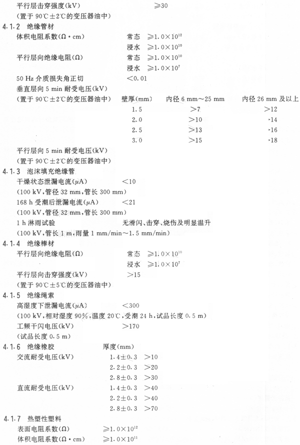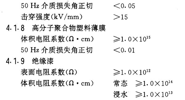 4.1 絕緣材料電氣性能指標(biāo)要求