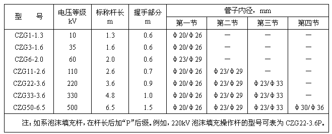 7.4.2 通用性強(qiáng)的絕緣操作桿、測(cè)試桿、按電壓等級(jí)、標(biāo)稱長(zhǎng)度、管型形成系列(詳見(jiàn)附錄B)。