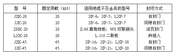 7.4.4 通用性強(qiáng)的絕緣子卡具,按額定荷重、封門方式形成系列:用于首、末端絕緣子的配套卡具,按額定荷重、適用金具型號(hào)、封門方式歸入絕緣子卡具系列內(nèi)(詳見(jiàn)附錄B)。