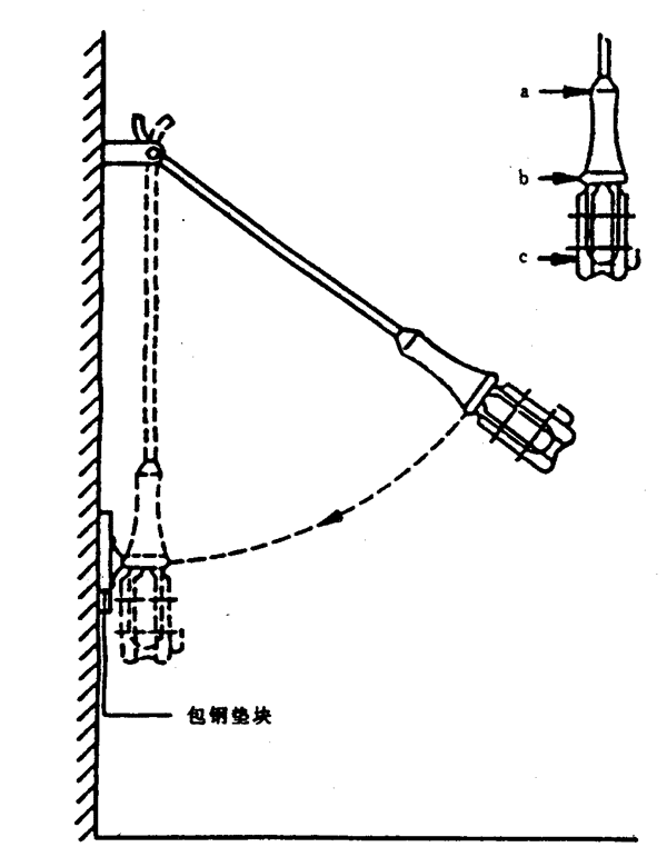 注:如果手提燈的外形是這樣的,即沒有包鋼墊塊,它就撞不到鋼板的話,那末包鋼墊塊就是必需的。