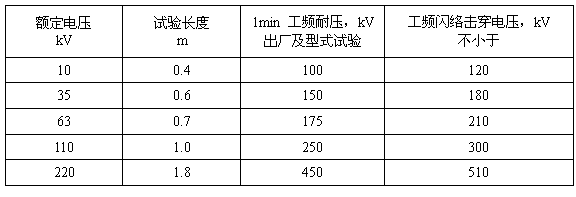6.2.1 10~220kV電壓等級的絕緣硬梯的絕緣部件應分別進行1min工頻耐壓試驗及工頻閃絡擊穿試驗,工頻耐受電壓及閃絡擊穿電壓值均應符合表1的規定。