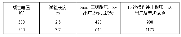 5.2.2 330~500kV電壓等級的絕緣硬梯的電氣性能、試驗項目及標準應按DL 409的要求,符合表2的規定。