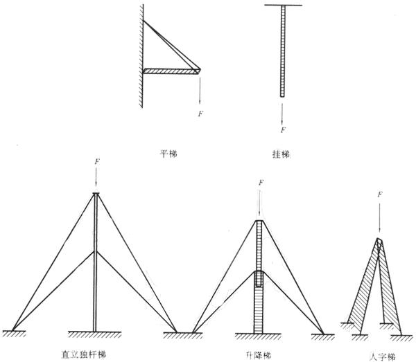 圖1 各類絕緣硬梯的基本受力狀態