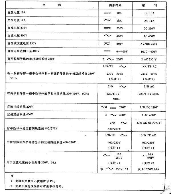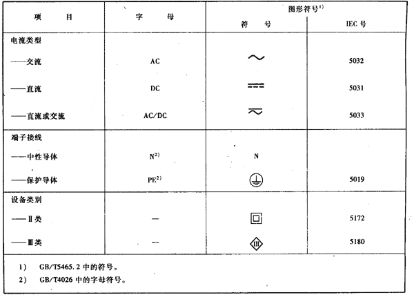 應當用GB/T4026規定的標準縮寫或用GB/T4728和GB/T5465.2或ISO7000規定的標準圖形符號作為額定值的標記。