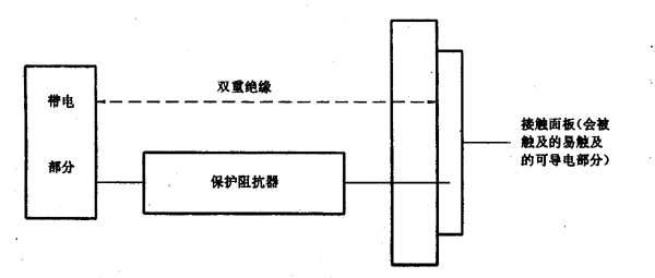 本措施用于避免穩(wěn)態(tài)電流和電荷大到可能對(duì)人有傷害的程度,尤其適用于經(jīng)過(guò)于元器件連接到帶電部分的電氣設(shè)備的易觸及部分,例如:以穩(wěn)態(tài)電流和電荷得到保護(hù)性限制為條件的電容器。