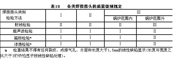 7.2.5各類焊縫的質(zhì)量級別規(guī)定見表10。