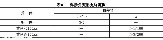 7.1.2焊接角變形應(yīng)符合表8規(guī)定。