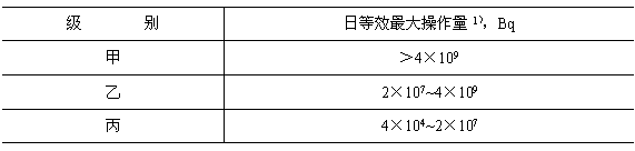 3.1.3開(kāi)放型放射源工作場(chǎng)所按操作量的大小分為三級(jí),具體分級(jí)表見(jiàn)表1。