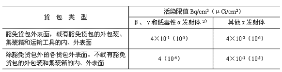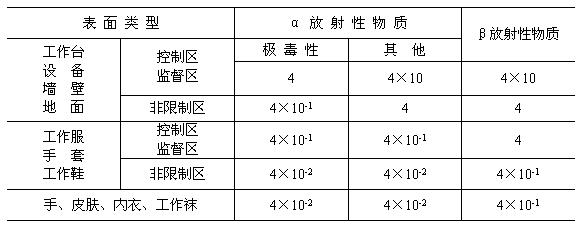 表2 表面的放射性物質(zhì)污染控制水平