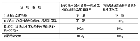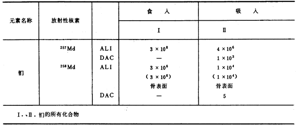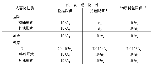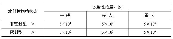 注:①表中所列數(shù)值適用于丟失在單位管轄區(qū)內(nèi)的放射性物質(zhì),如丟失在單位管轄區(qū)外,表中數(shù)值降低10倍。