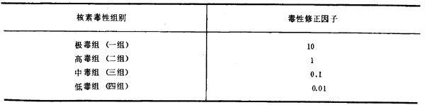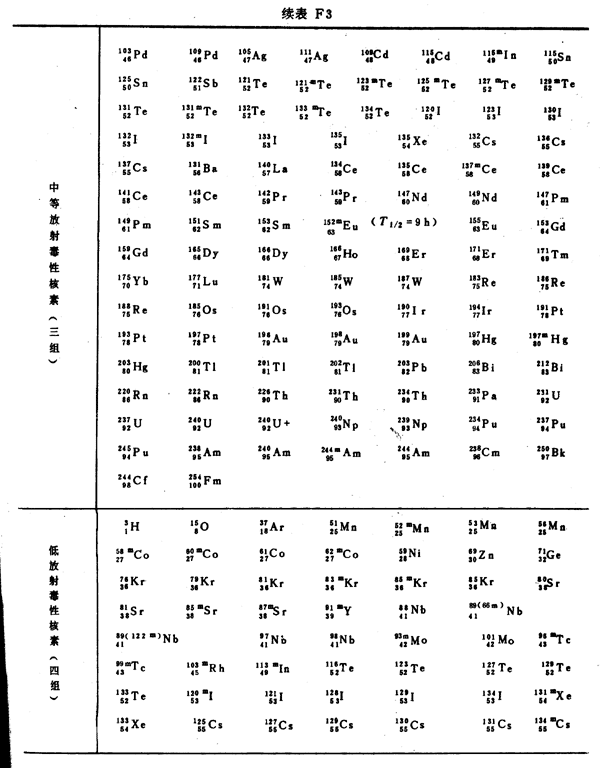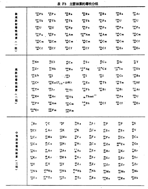 按照核素的相對(duì)毒性,主要核素的毒性分組見(jiàn)表F3。