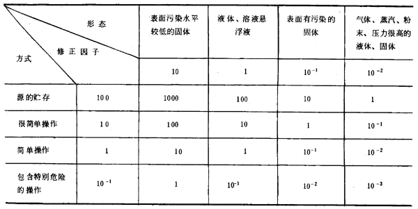 表F2 操作方式與核素形態(tài)修正因子