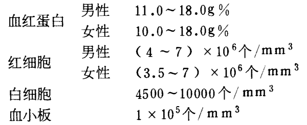 K3.3 血血器官及其功能異常,周?chē)夯?yàn)有兩項(xiàng)超過(guò)下列正常范圍: