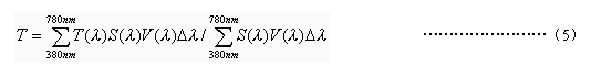 5.3.2 根據光譜透射曲線,在380~780nm波長范圍內,每隔10nm讀出相應波長的光譜透射比T(λ)。