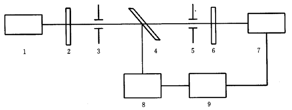 1―激光光源;2―衰減器;3―擋光光欄;4―分束器;5―光欄;6―待測樣品;7―探測器(激光功率或激光能量測試儀器);8―參考探測器(激光功率或激光能量測試儀器);9―數據采集處理系統