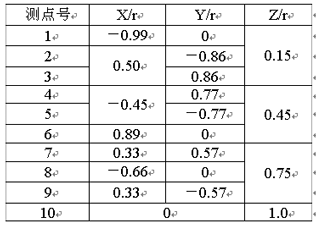 7.4.3.1 半球測量表面上共布置10個測點(見圖B1和表B1)。