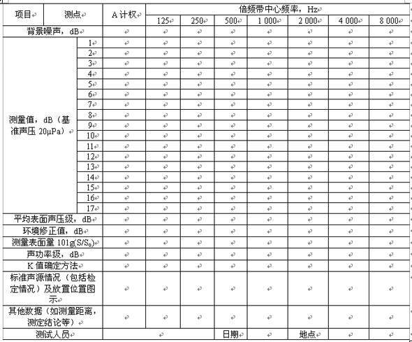 按照本標準進行測量,A計權聲功率級的標準偏差為2dB,倍頻帶聲功率級的標準偏差不大于表1規定的值。