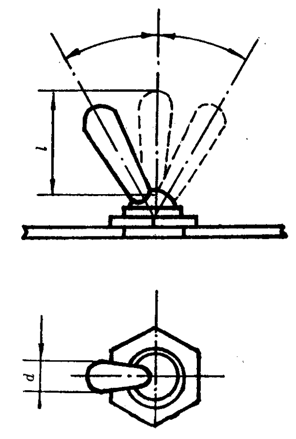5.1.7 用手指操縱的扳鈕開關,轉換開關的柄部應為圓柱形、圓錐形或棱柱形。圓錐形柄部應大徑朝外,且柄的外端呈球形。雙位轉換開關從一個位置扳轉到另一位置的角度一般應不超過40°~90°范圍,三位轉換開關為30°~50°。