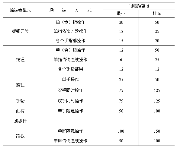 5.2.1 操縱器的尺寸應符合GB 10000中有關操作者動作肢體的人體測量學指標。