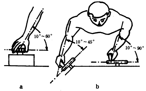 5.3.7.2 無手柄手輪的轉動平面應與前臂成10°~60°角(見圖10a)。