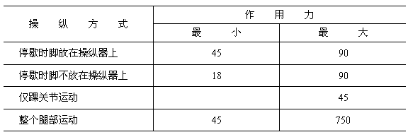 5.4.6 腳控操縱器的作用力應符合表14的規定。