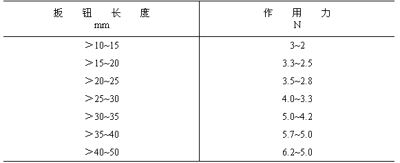 5.4.3 扳鈕開關的作用力應符合表11的規定。